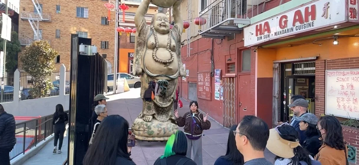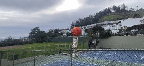 Buddha Basketball 3-Pointer is an augmented reality (AR) sculpture modeled after a found porcelain Buddha and a plush basketball topy sourced at Rcology in 2023 during my artist-in-residency program. This placed base piece was part of Ex:Fields art walking tour and located in various basketball courts in San Francisco. The Buddha Basketball is monumentally large, making the stark contrast between the fine porcelain Buddha and the playful plush basketball toy even more apparent. The combination of the two contrasting objects becomes a homage to stuff and the practice of collecting and saving as a means of survival, a cultural practice often found in intergenerational, migrant families. Transforming the Basketball Buddha into an AR digital object, he now becomes immortal, no longer vulnerable to breakable porcelain, making the Basketball Buddha last forever.